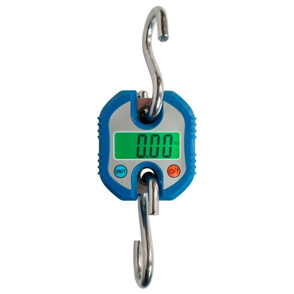 O design inclui gancho e alça em aço inoxidável para suporte da carga, enquanto o corpo da balança é feito em plástico ABS, garantindo leveza e proteção contra impactos. É ideal para uso em armazéns, mourões de carga, oficinas, na agricultura ou para quem precisa pesar grandes volumes de forma prática e segura.