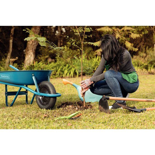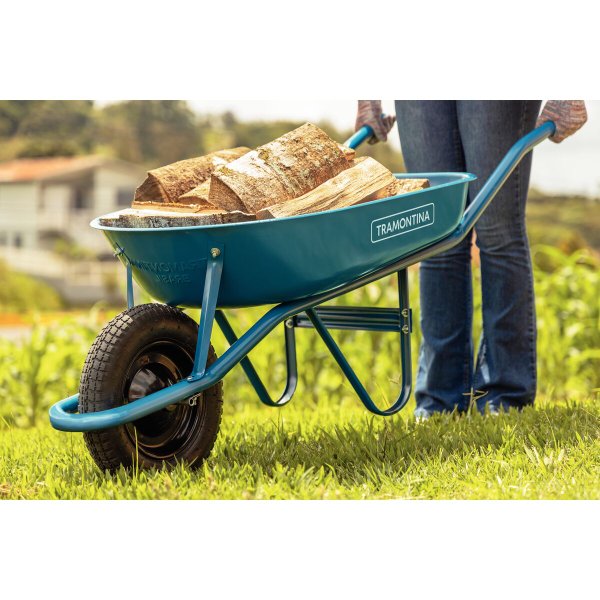 O CARRINHO DE MÃO TRAMONTINA 77704432 foi projetado para facilitar o transporte de materiais com robustez e segurança. Sua caçamba metálica rasa azul, fabricada em chapa de 0,6 mm (equivalente à chapa 24), permite que você transporte até 50 litros de carga sem sobrecarregar o uso.