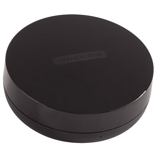 Com design compacto e moderno na cor preta, este controle se conecta à sua rede Wi-Fi 2,4 GHz e utiliza BLE (Bluetooth Low Energy) para facilitar a configuração inicial. Uma vez configurado, ele permite o acionamento e programação de seus aparelhos via aplicativo de smartphone ou por comando de voz, sendo totalmente compatível com Amazon Alexa e Google Assistant.