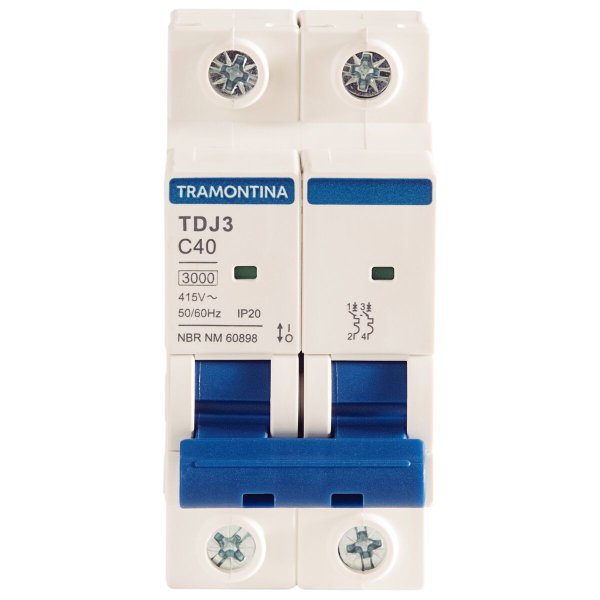 O Disjuntor Bipolar Tramontina TDJ3-2C40 é um dispositivo de segurança de alta capacidade, essencial para a proteção de circuitos bifásicos ou fase-neutro de grande demanda contra sobrecarga e curto-circuito.