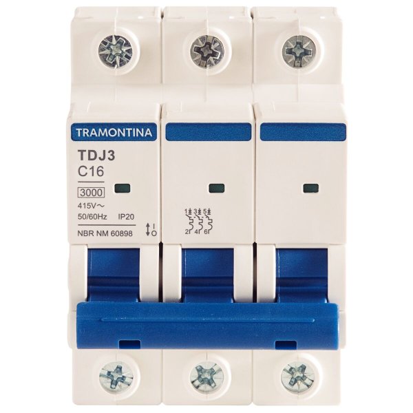 O Disjuntor Tripolar Tramontina TDJ3-3C16 é um dispositivo de segurança essencial para a proteção de circuitos trifásicos de média demanda, garantindo o desligamento simultâneo dos três condutores em situações de sobrecarga ou curto-circuito.
