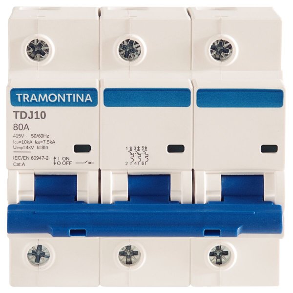O Disjuntor Tripolar Tramontina TDJ10-3C80 é um componente de segurança de alto desempenho, projetado para a proteção de circuitos trifásicos de alta corrente que exigem uma robusta capacidade de interrupção de curto-circuito.