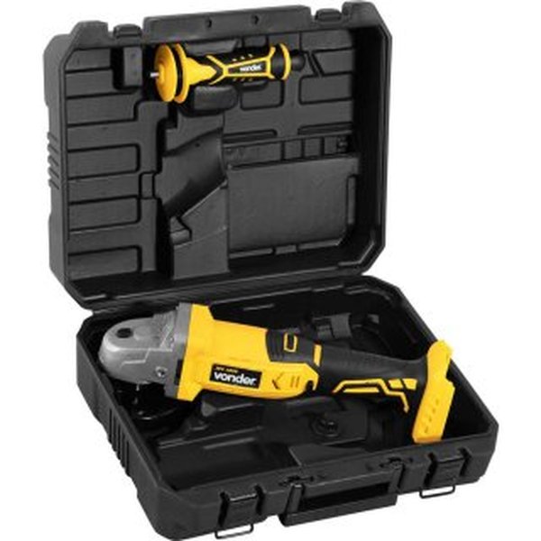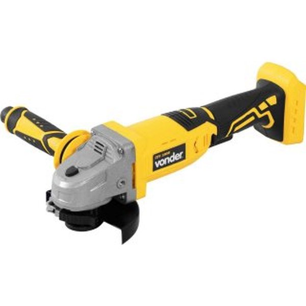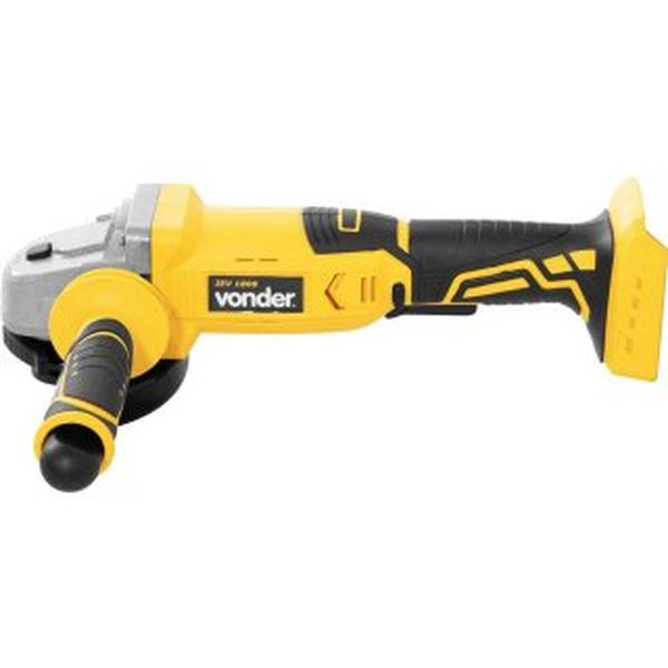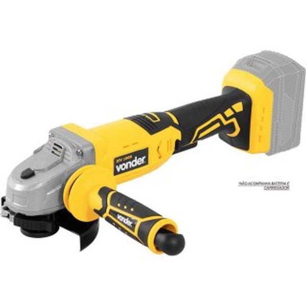 Não acompanha bateria nem carregador — permite que se reutilize baterias da mesma linha (sistema de bateria intercambiável Vonder), o que gera economia para quem já possui outras ferramentas da mesma plataforma. A estrutura inclui botão de trava do eixo, dupla isolação, capa de proteção do disco e maleta plástica para transporte.