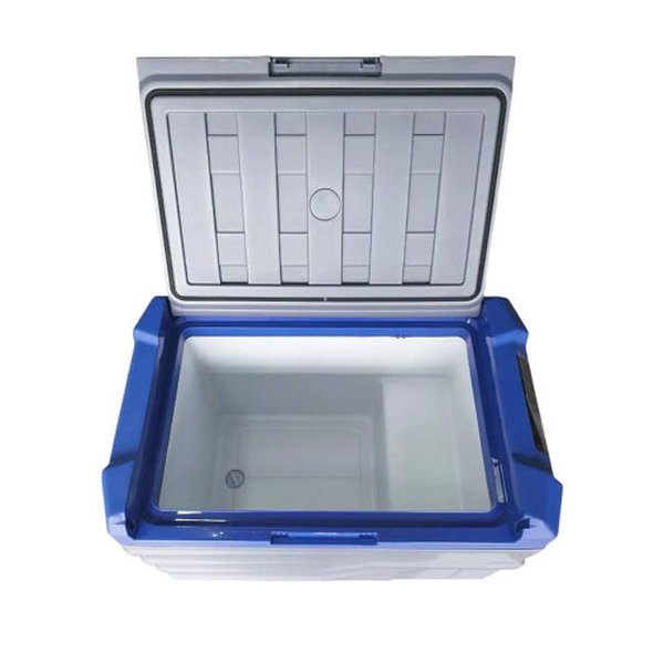 Seu design na cor azul é funcional e durável, contando com alças laterais para facilitar o transporte. A NL50 atua como refrigerador e freezer, com temperatura ajustável através de um painel de controle digital, garantindo o desempenho e a conservação de seus itens, mesmo em condições de estrada.