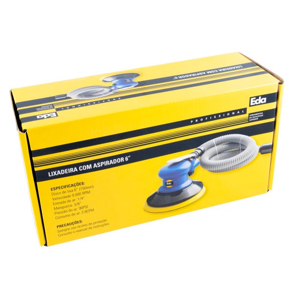 Por ser pneumática, ela utiliza ar comprimido como fonte de energia, o que facilita seu uso em oficinas industriais ou ambientes que já dispõem de compressor. A versão com aspiração ajuda a manter o ambiente limpo, reduzindo poeira e partículas projetadas durante o lixamento, o que contribui para segurança e limpeza do local de trabalho.