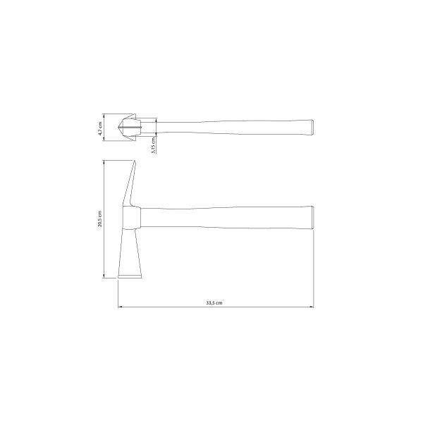 O cabo é em madeira envernizada, fixado por resina epóxi, o que assegura a união entre cabeça e cabo e evita folgas durante o uso. Esse sistema confere confiabilidade e durabilidade à ferramenta.
