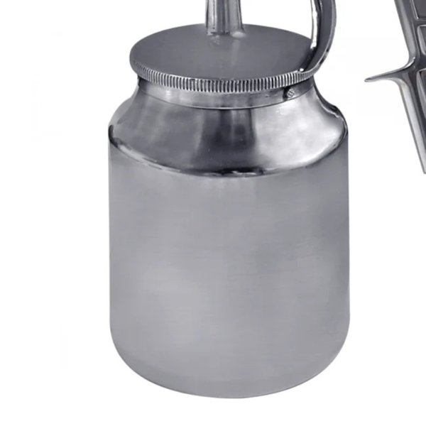 Com bico de 1,5 mm e caneca de 600 ml, oferece um ótimo equilíbrio para o uso diário. Projetada para ser ergonômica e leve (~600 g), opera com pressão de 4 bar e consumo de ar controlado (0,20 PCS), garantindo uma taxa de transferência de 50%. É a ferramenta ideal para acabamento de qualidade e alta produtividade em projetos menores.