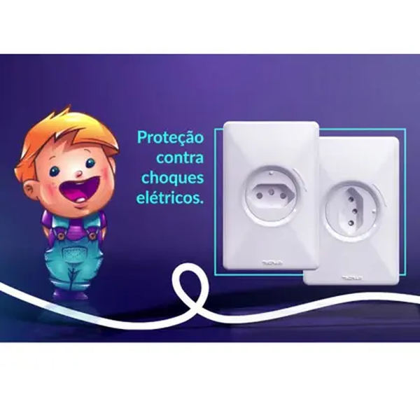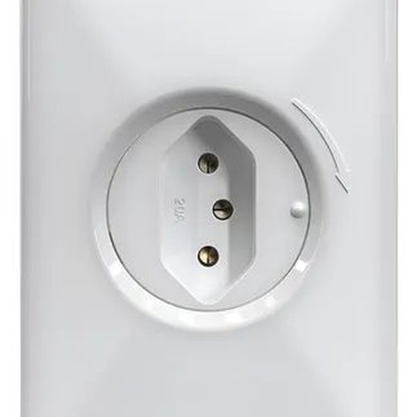 O grande diferencial é seu mecanismo de segurança: os terminais internos da tomada só são energizados quando um plugue padrão (2P+T) é totalmente inserido e girado 90 graus para a direita. Ao remover o plugue, o mecanismo retorna automaticamente à posição protegida. Isso evita que objetos metálicos, como chaves ou garfos, possam causar contato com a rede elétrica.