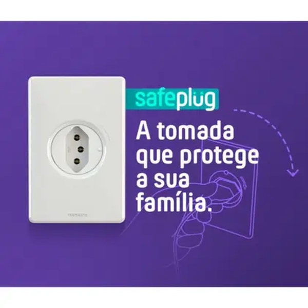 Fabricada em termoplástico de engenharia isolante e certificada pelo INMETRO, a Safeplug é resistente e atende ao padrão de embutir em caixas 4x2". É ideal para uso residencial com corrente nominal de 10 A e tensão máxima de 250 V.